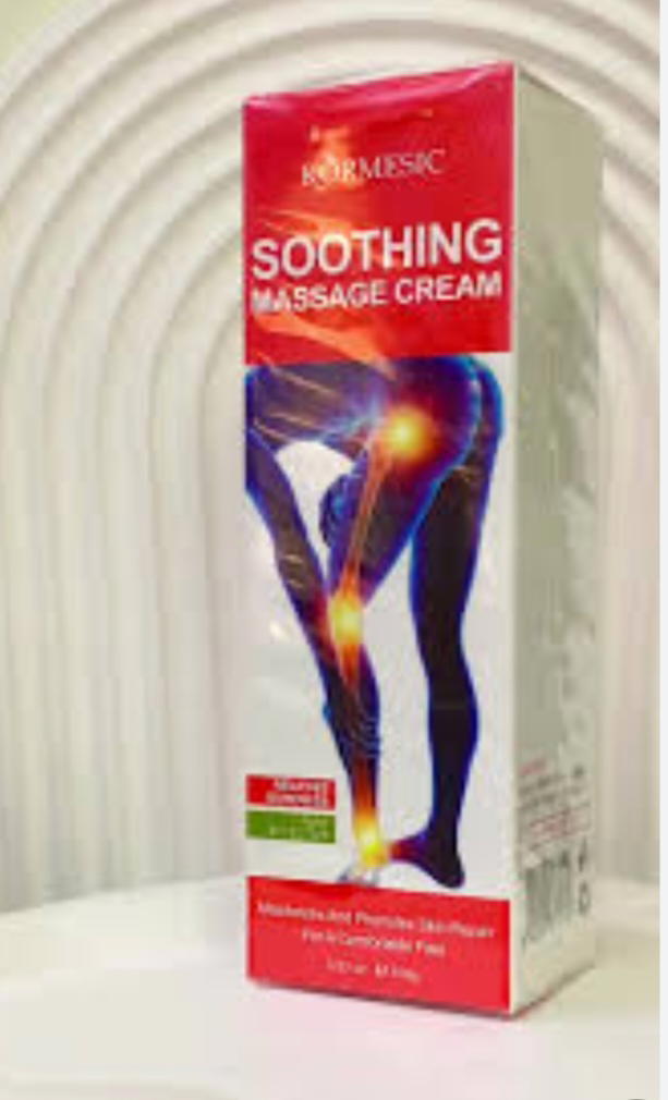 كريم التدليك المهدئ Kormesic Soothing Massage Cream. يستخدم لتخفيف آلام العضلات والمفاصل.يساعد على استرخاء العضلات المتوترة وتقليل الالتهاب والتورم.يرطب البشرة ويعزز إصلاحها لشعور مريح